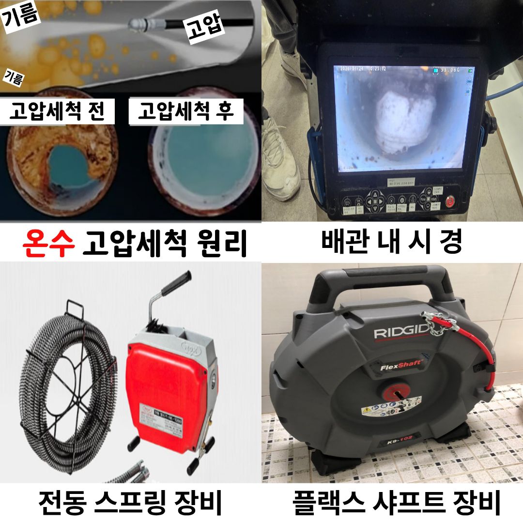 각종 배관 문제를 전문 장비로 해결하고 있습니다.